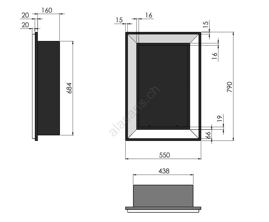 • Dimensioni del camino: 79 x 55 x 20 cm.