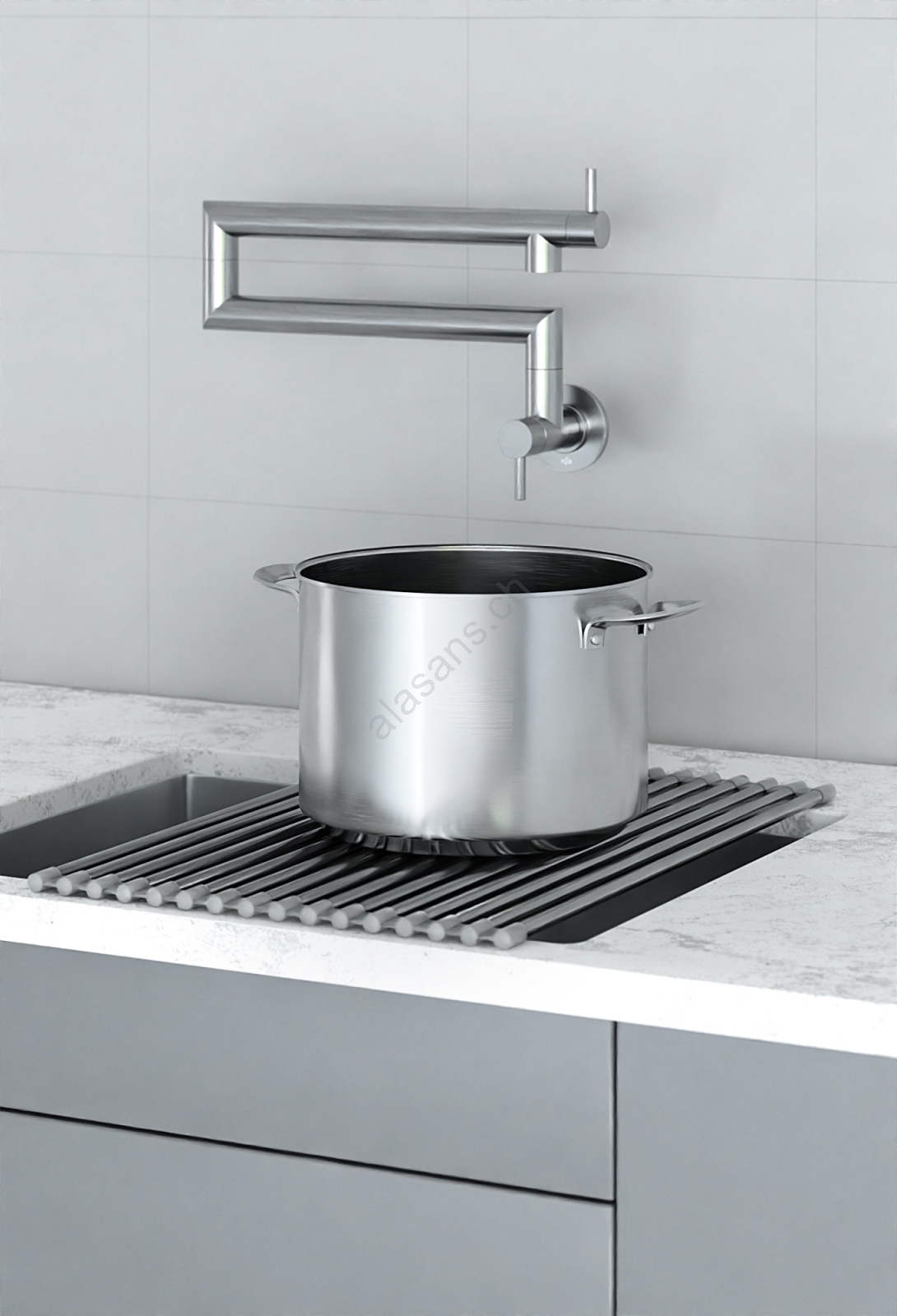 • Grazie al design pieghevole il rubinetto occupa meno spazio e non ingombra in cucina quando non è in uso.