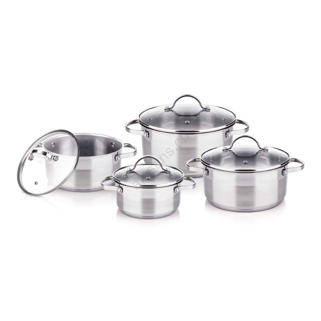 • Set di pentole in acciaio inox.