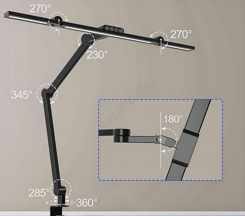 • Facile da maneggiare con infinite possibilità di regolazione grazie a 7 giunti rotanti fissi.