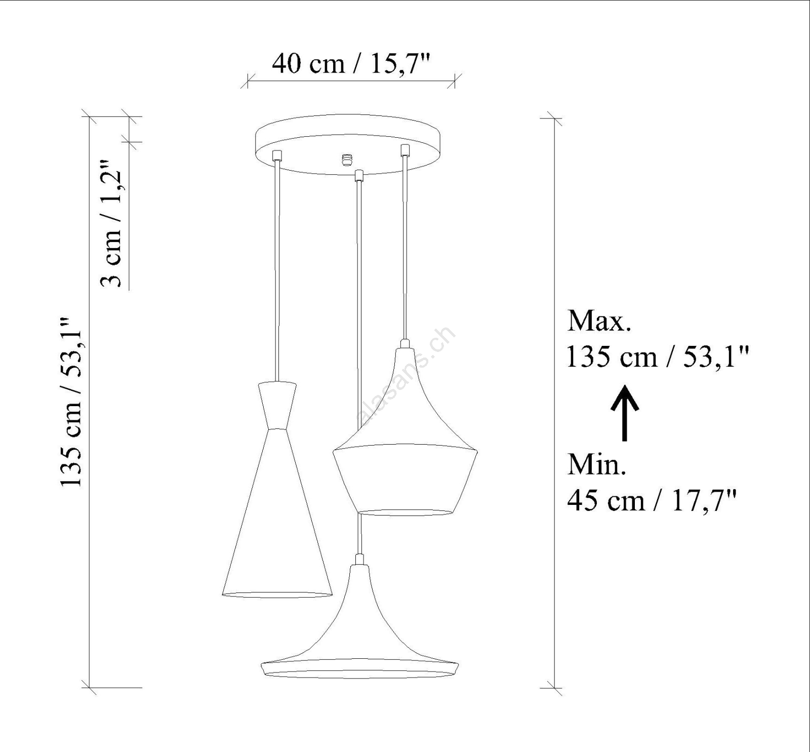 • Lampadario a sospensione su cavo TOM, 3x E27, 40W max, 230V, blu