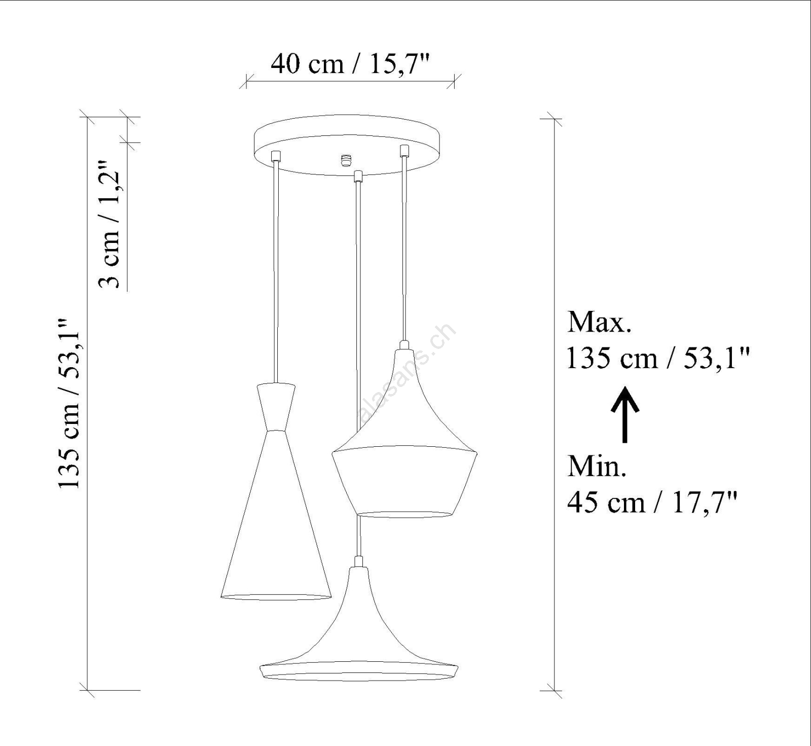 • Lampadario a sospensione su cavo TOM, 3x E27, 40W max, 230V, blu