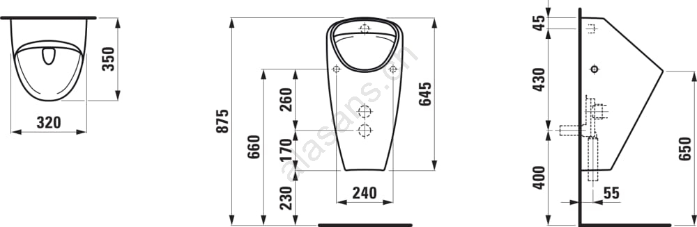 LAUFEN H8410610000001 - Urinale CAPRINO con alimentazione interna, scarico posteriore, ceramica/bianco