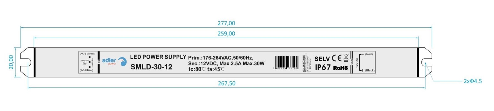 LED Trasformatore elettrico DRIVER 30W/230V/12V IP67