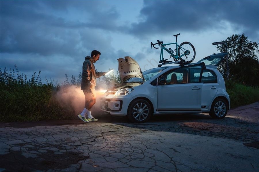 • La lampada offre cinque livelli di luminosità della luce bianca, due livelli per la luce rossa e una modalità lampeggiante che aumenta la visibilità in situazioni di emergenza.