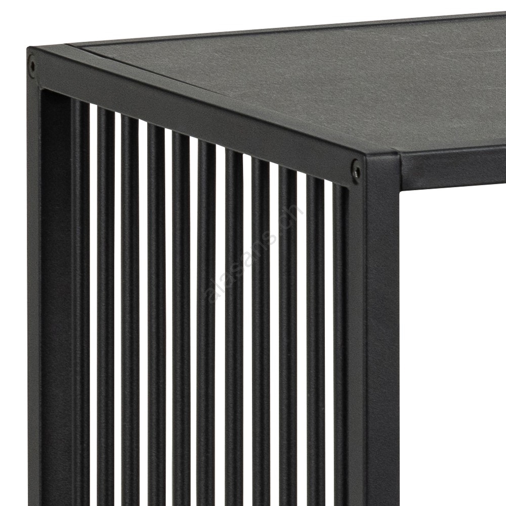 • Struttura e base in acciaio verniciato a polvere nero opaco, 2 ripiani in melaminico grezzo nero opaco Izmir.