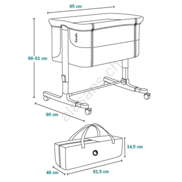 • Grazie all'altezza regolabile in modo continuo e alla lunghezza variabile dei piedini, puoi adattare perfettamente la culla al tuo letto.
