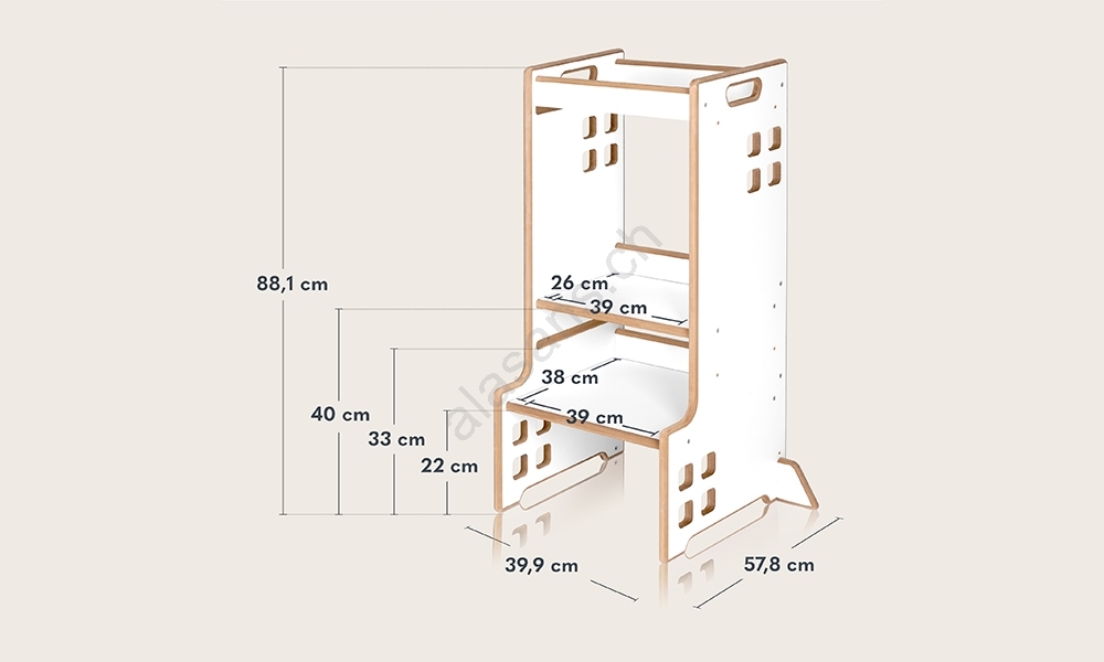 • La torre di apprendimento è uno sgabello multifunzionale che permette ai bambini di partecipare a diverse attività creative al piano di lavoro della cucina o alla scrivania.