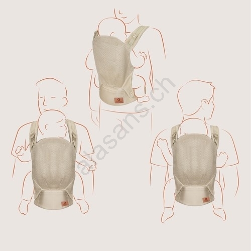 • Il marsupio MARGAREET consente di portare il bambino in 3 posizioni, a seconda dell'età.