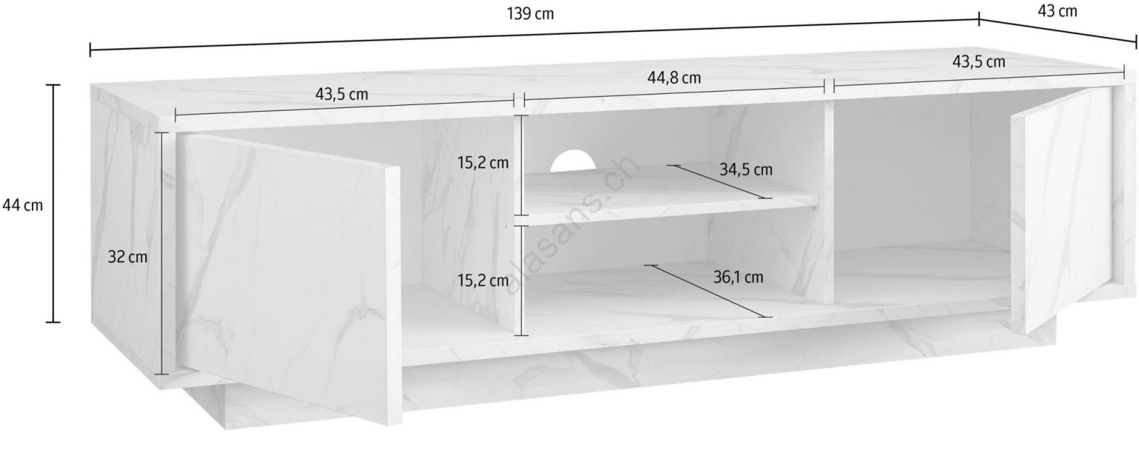 • I ripiani inferiori e i ripiani aperti offrono spazio per libri, oggetti decorativi e accessori per la casa.