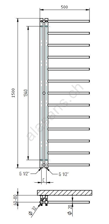 P.M.H. AP2W - APOLLO 346W Scalda asciugamani, 150 cm, destro, bianco