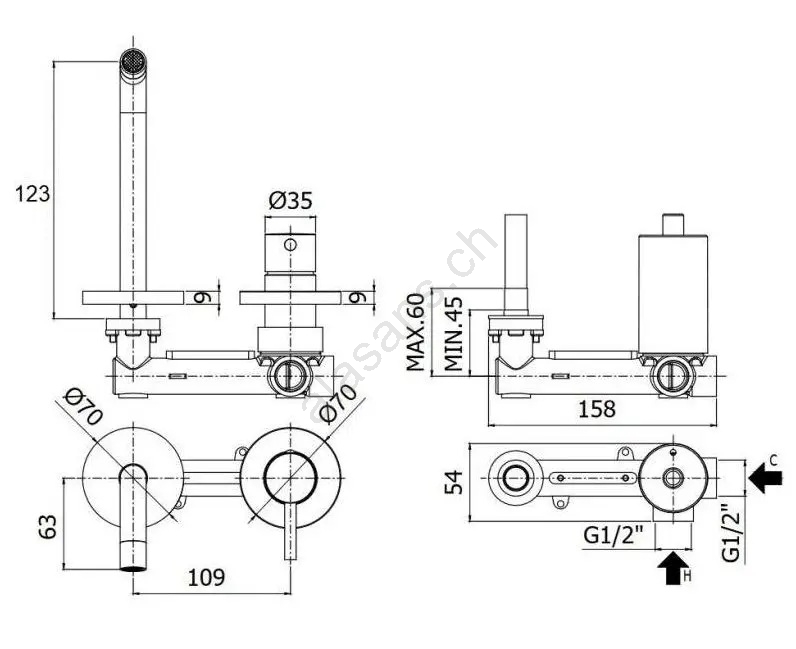 • L'uscita dell'acqua è fissa e progettata per installazioni standard da lavabo.