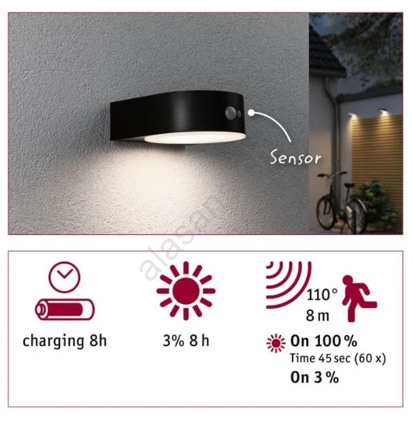 Paulmann 94570 - LED/5,5W IP44 Applique solare con sensore EILEEN 3,7V 2000 mAh