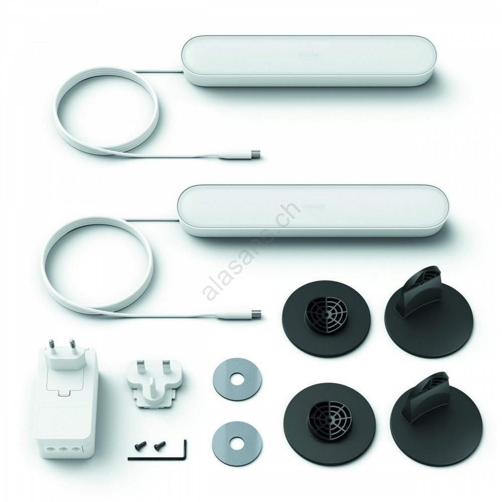 • Il set esteso include - 2x Hue Play con cavo da 2m, 1x alimentatore, 2x supporto, 2x clip per TV, nastro adesivo e materiale per l'installazione.