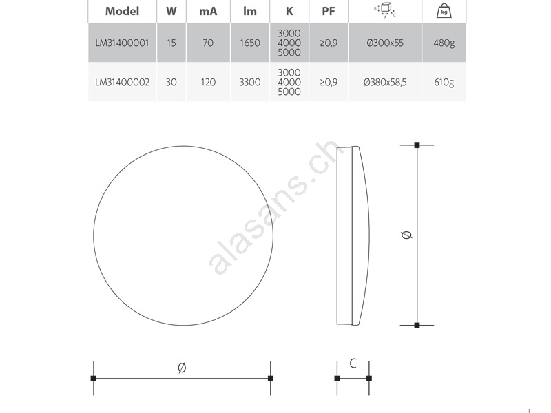 Plafoniera da soffitto LED dimmerabile per bagno, 30W, 230V, 3000/4000/5000K, Ø 38 cm, IP54