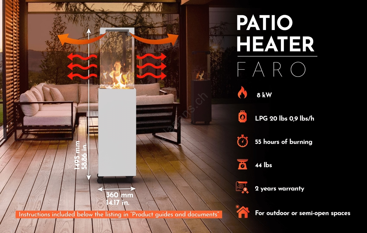 • Il coperchio incluso protegge il riscaldatore a gas in tutte le stagioni.