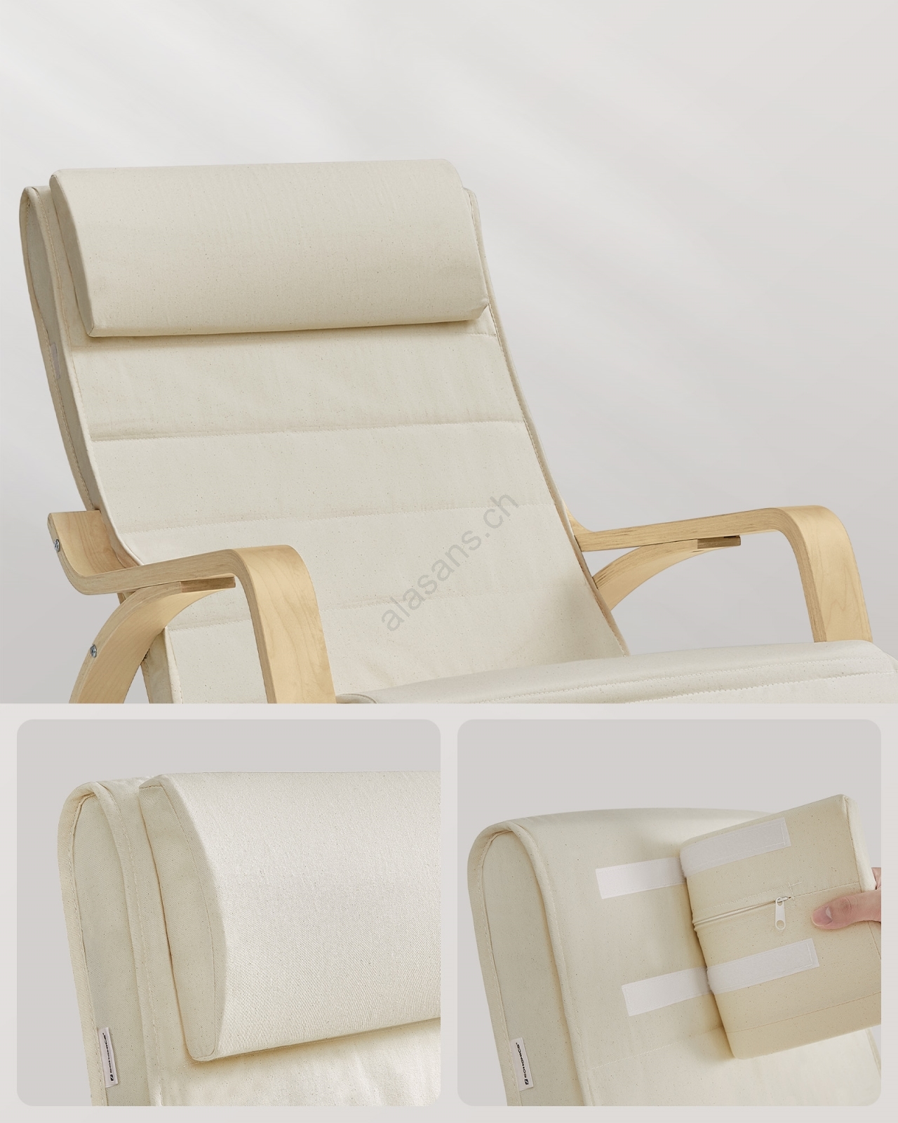 • La poltrona a dondolo è realizzata con legno resistente di alta qualità e 100% cotone.