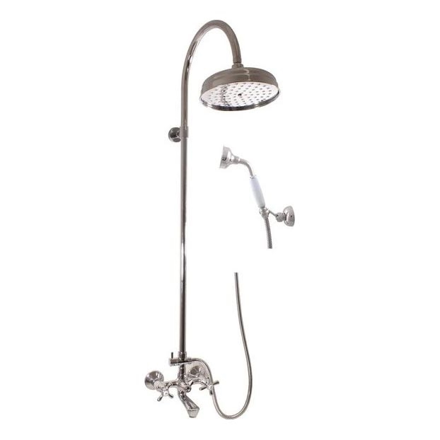 • Set vasca con miscelatore da parete, soffione e doccetta.