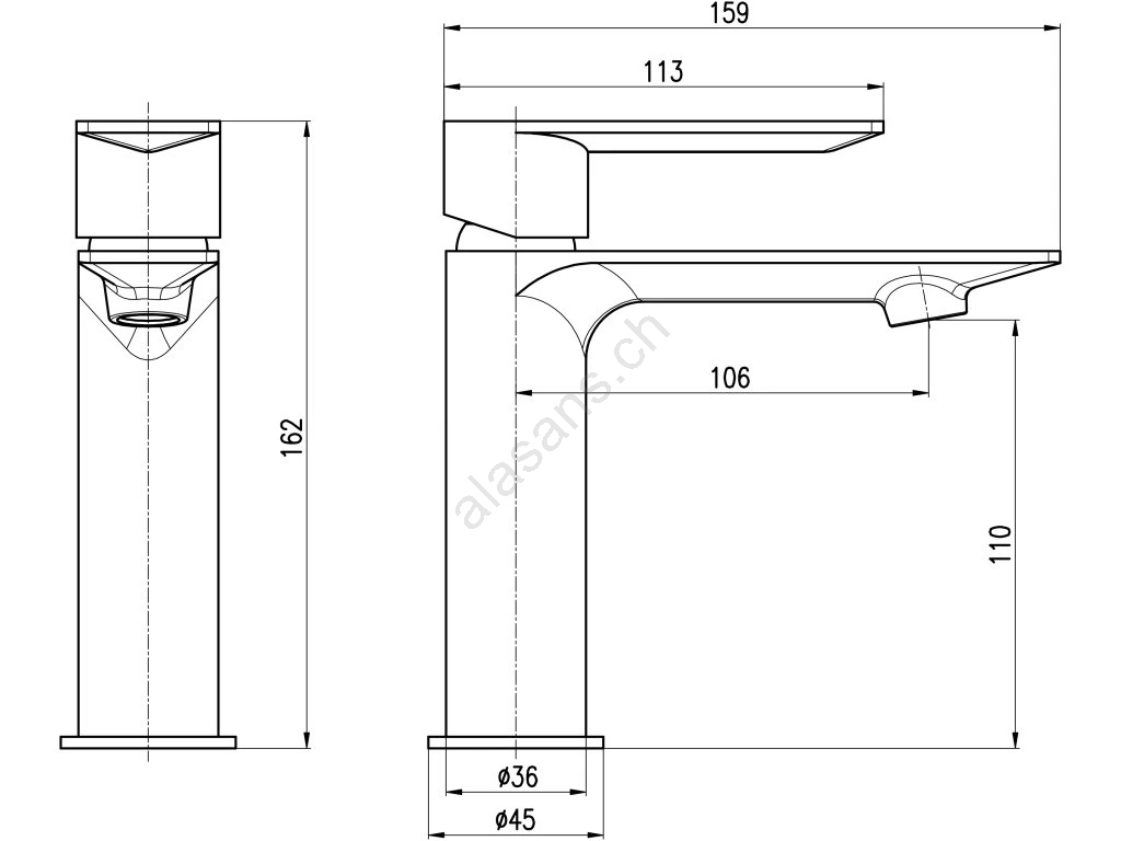 • Miscelatore da lavabo monocomando da appoggio senza piletta di scarico.