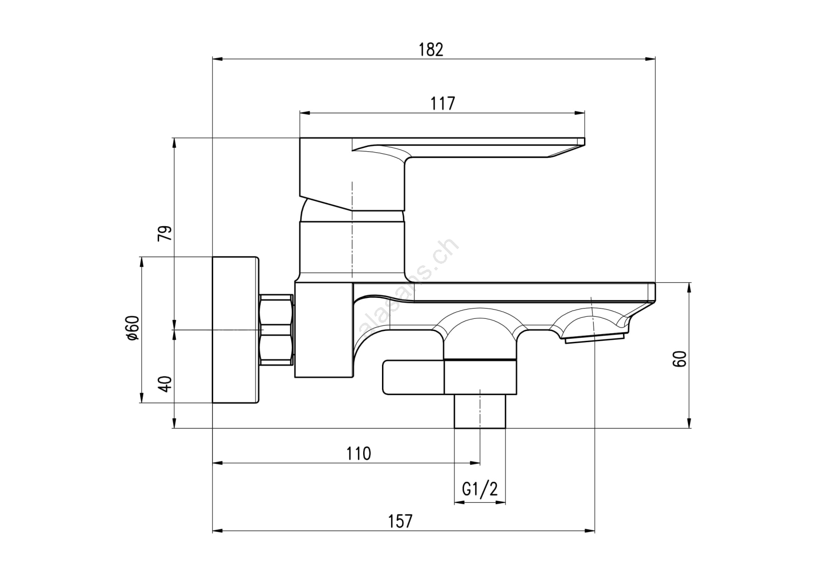 • Comando del miscelatore a leva.