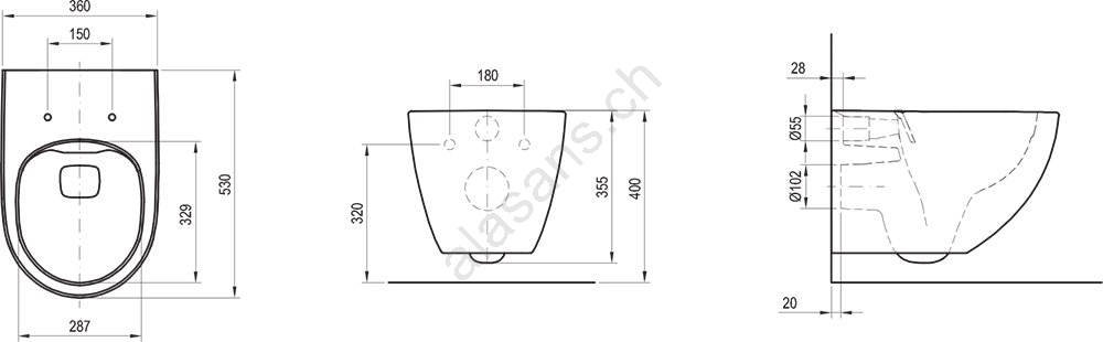 • Il montaggio nascosto contribuisce all’aspetto elegante del sanitario e semplifica la pulizia, poiché la superficie esterna non presenta punti difficili da raggiungere.