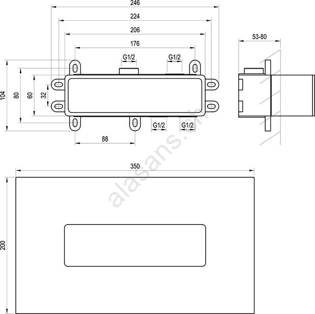 • R-box è un sistema di installazione universale per miscelatori da incasso orizzontali, incassato nella parete.