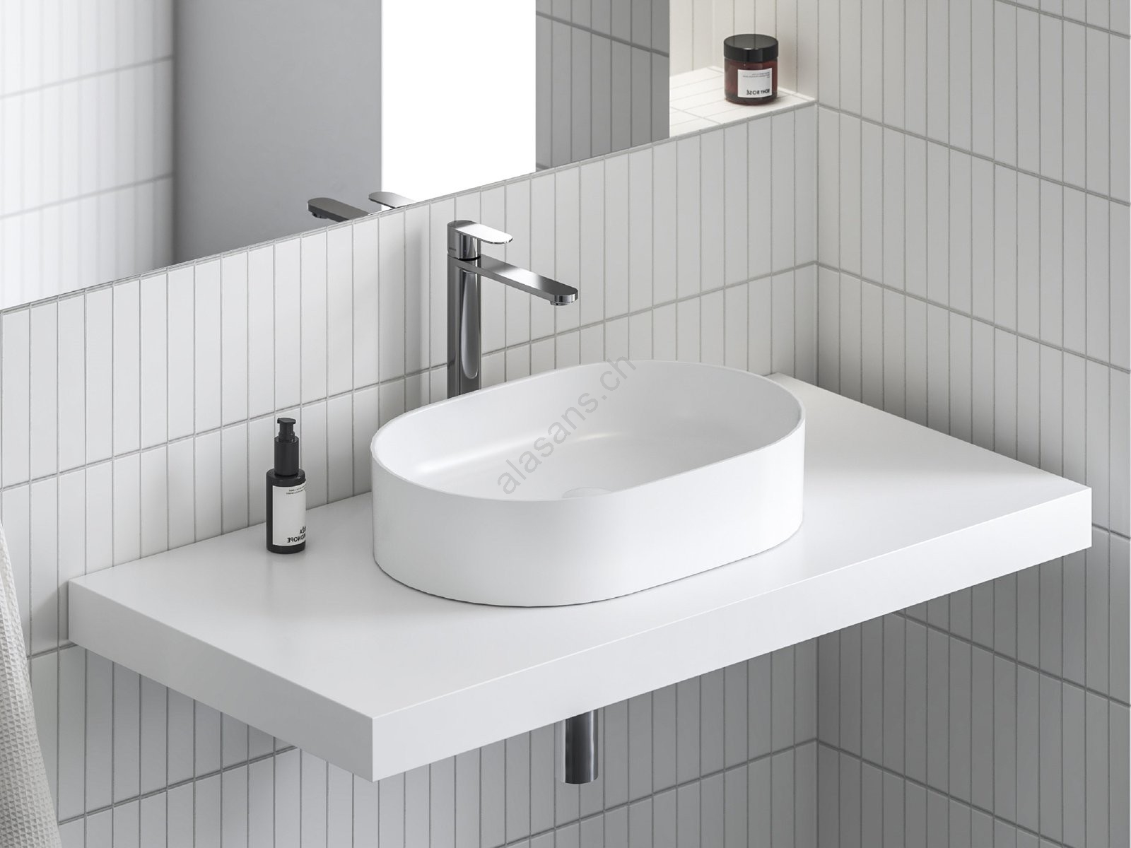 • Il miscelatore per lavabo Crome in finitura cromata lucida ha un'altezza extra prolungata di 300 mm, ideale per lavabi da appoggio.