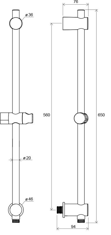 • Uscita acqua da incasso direttamente nell'asta con filettatura esterna G1/2".