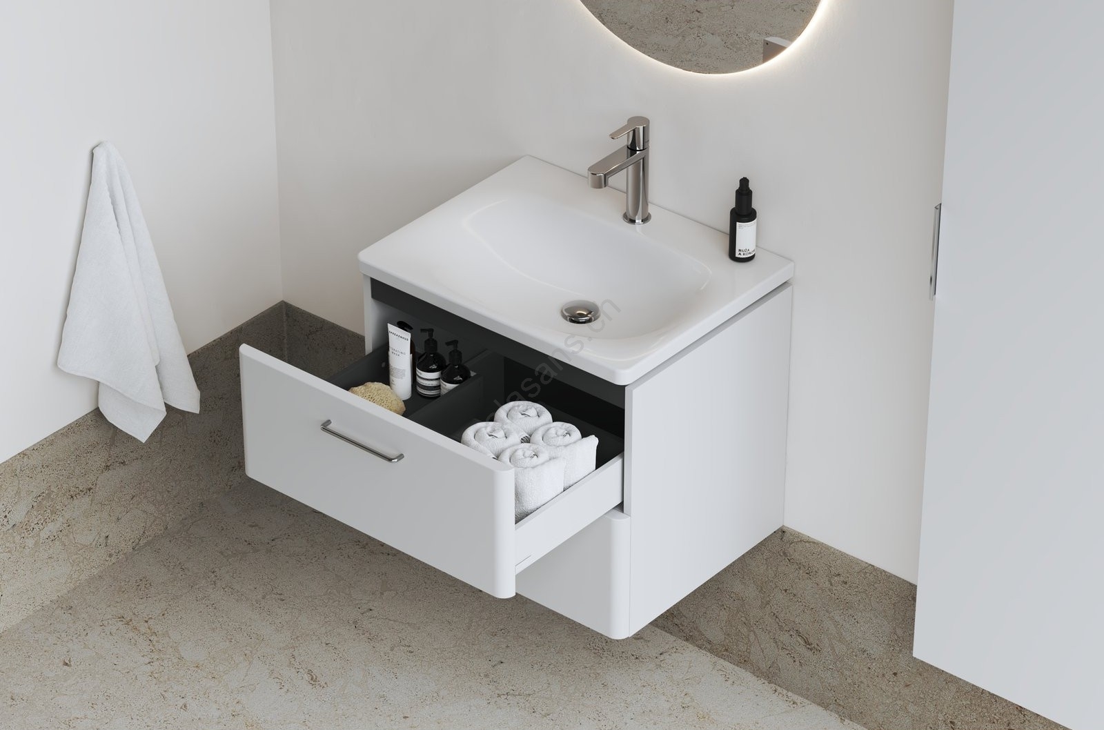 • Lavabo da mobile Balance dalle dimensioni 50 x 46,5 x 3 cm è progettato per l'incasso in un mobile sospeso.