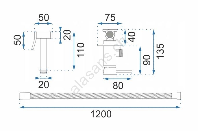 • Lunghezza del tubo: 120 cm.