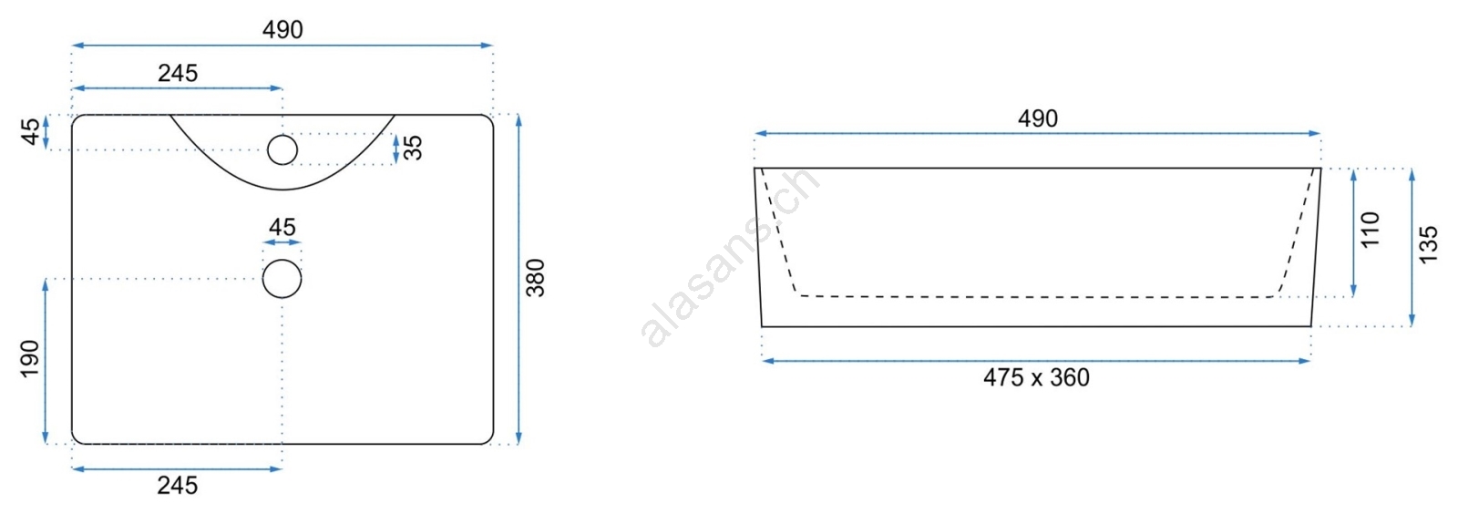 • Il lavabo è realizzato in ceramica sanitaria di alta qualità.