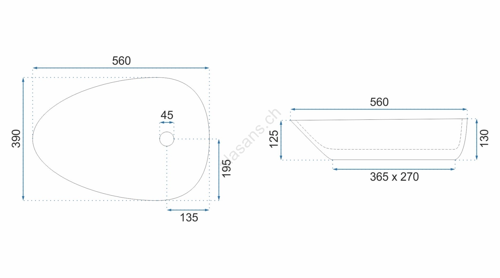 REA-U8536 - Lavabo da appoggio GRETA 39x56 cm ceramica/bianco lucido