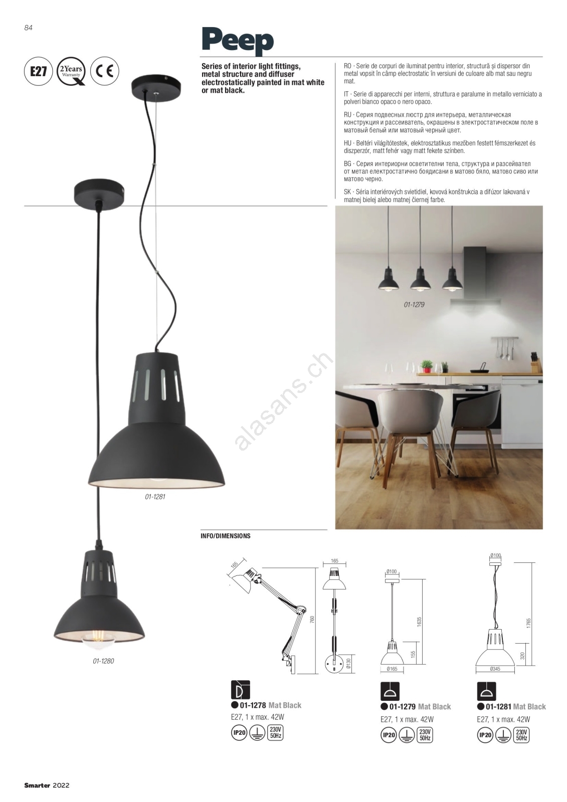 • Redo 01-1281 - Lampadario a sospensione con cavo PEEP 1xE27/42W/230V Ø 34,5 cm nero