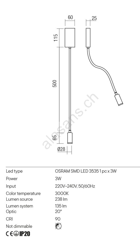 • Redo 01-4475 - WALLIE Lampada flessibile LED 3W/230V USB CRI 90 bronzo