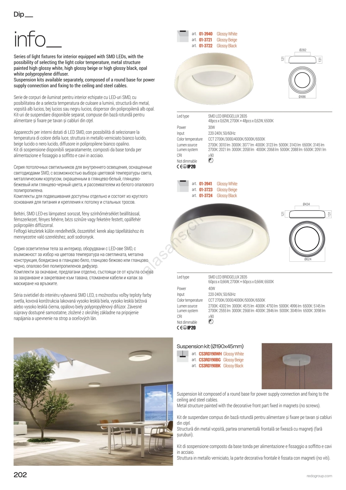 • Redo 01-3721 - Plafoniera a LED DIP 30W/230V, 2700/3000/4000/5000/6500K, IRC 90, Ø 48,6 cm, beige