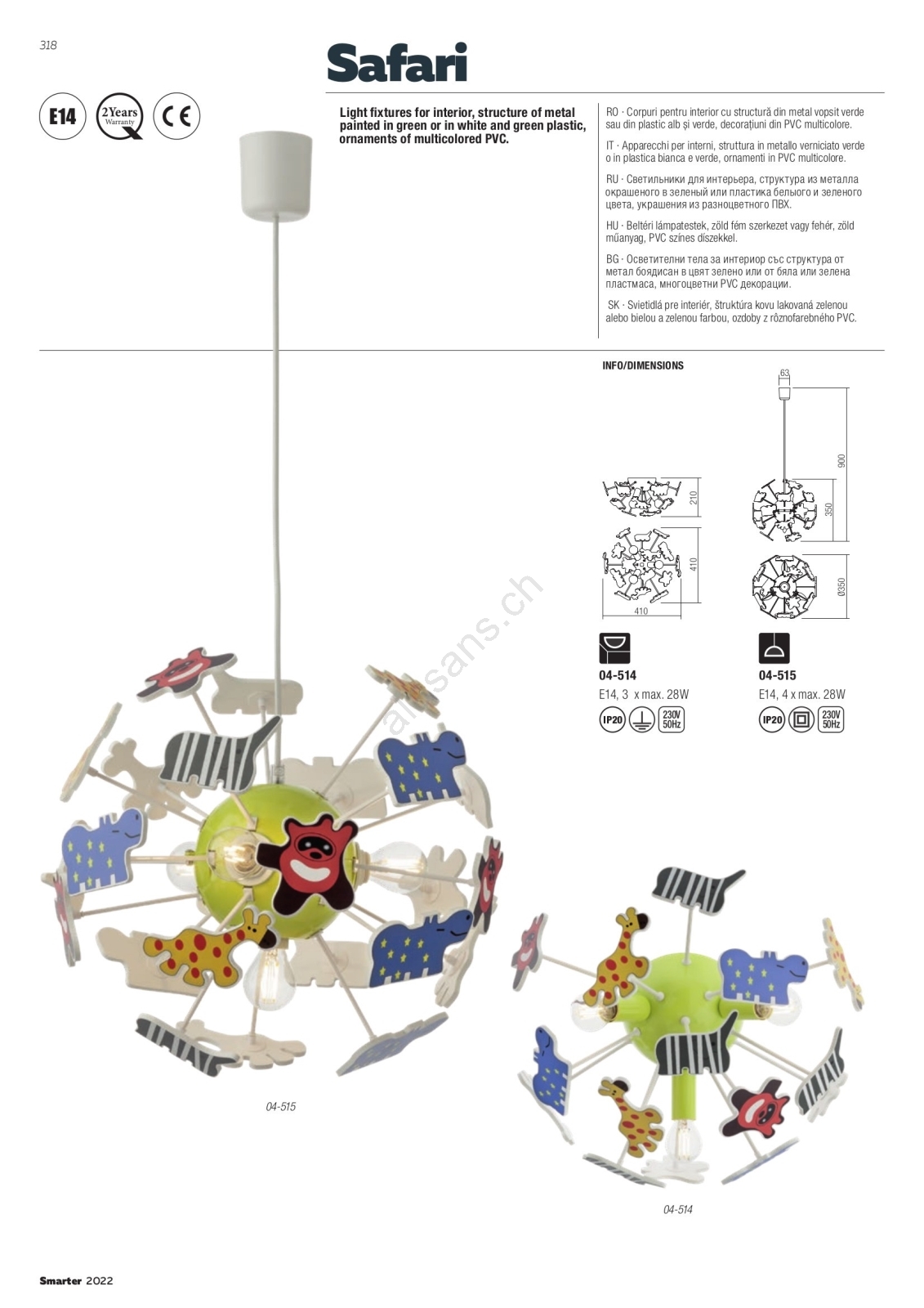Redo 04-514 - Plafoniera per bambini SAFARI 3xE14/28W/230V Ø 41 cm multicolore