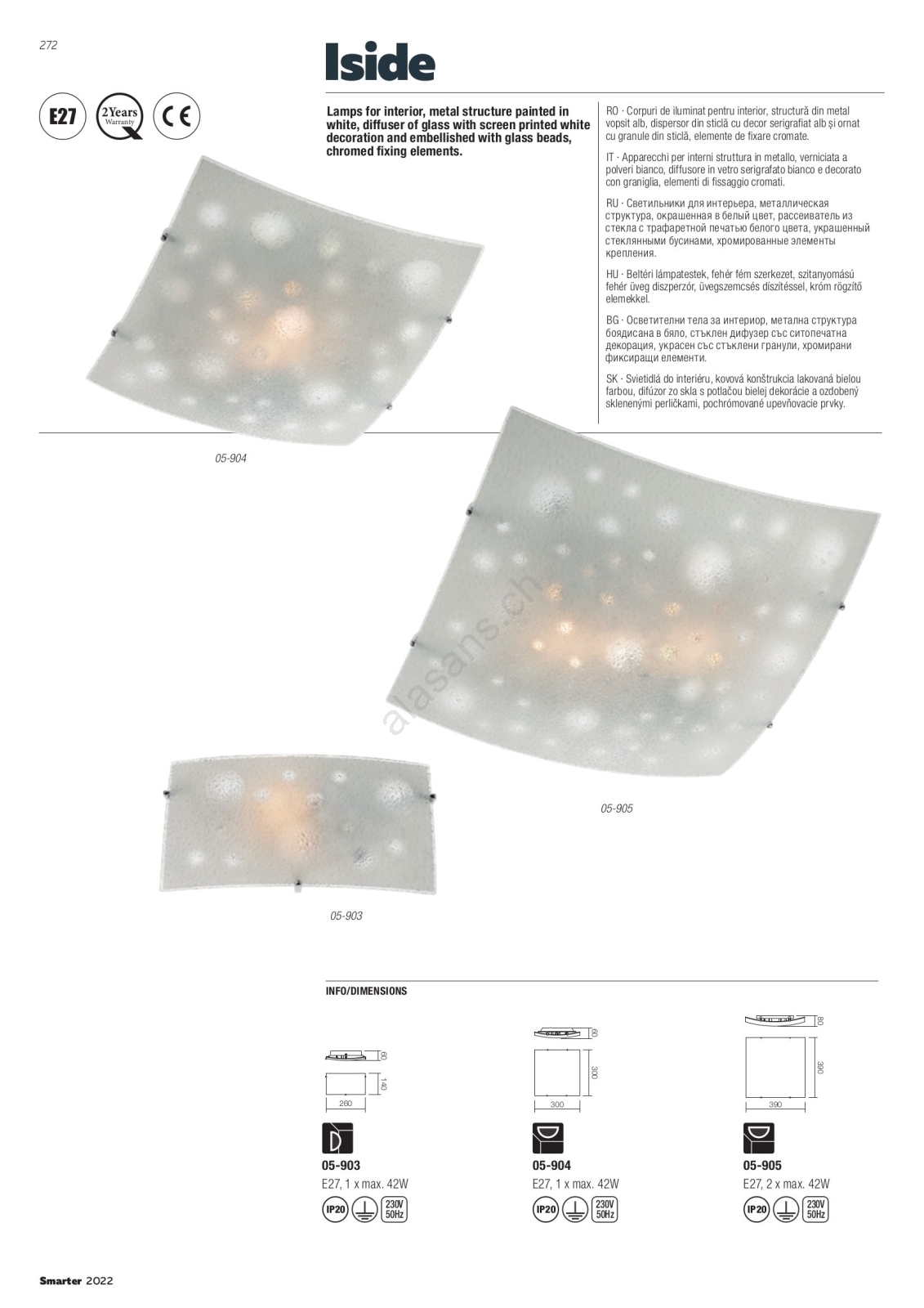 Redo 05-904 - Plafoniera ISIDE 1xE27/42W/230V 30x30 cm trasparente