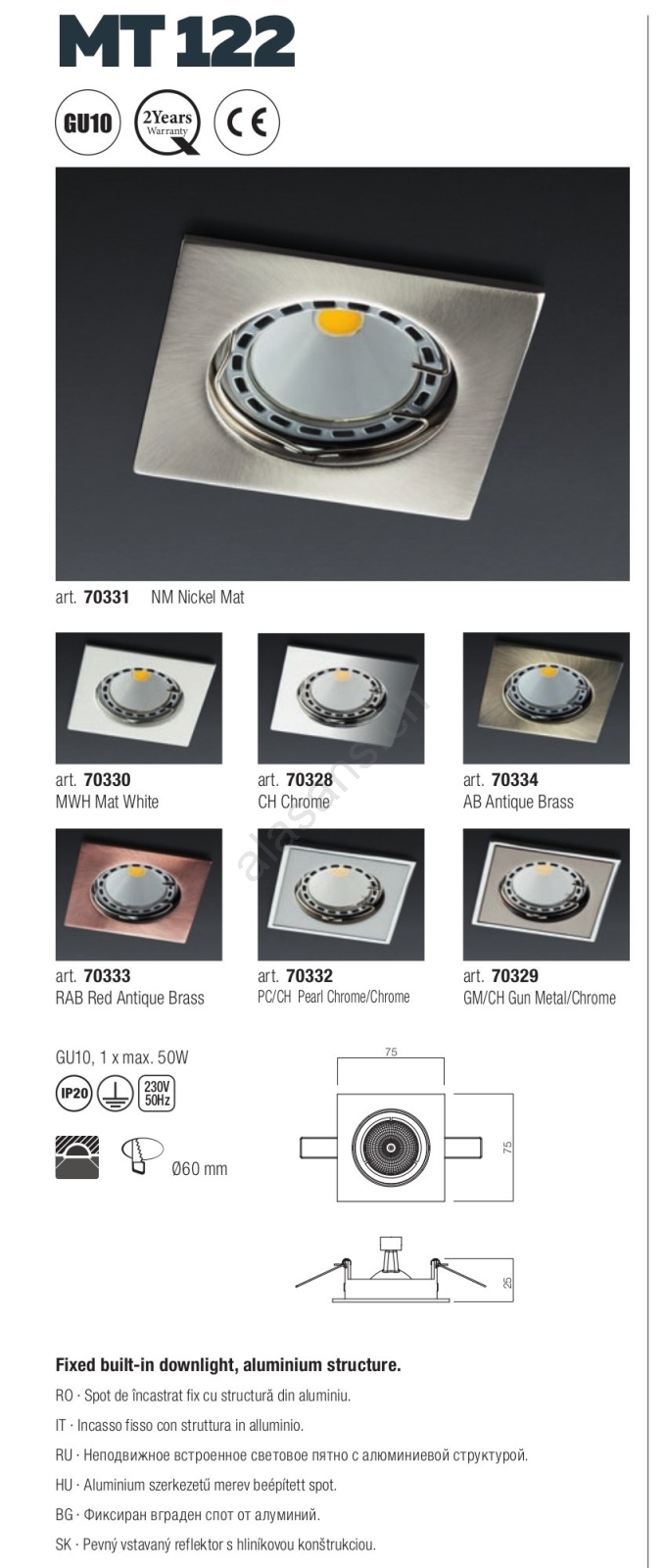 Redo 70328 - Lampada da incasso MT 1xGU10/50W/12V