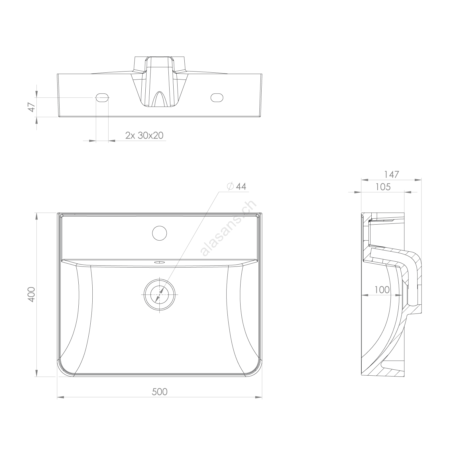 • Ha dimensioni 500x400 mm ed è di colore bianco.