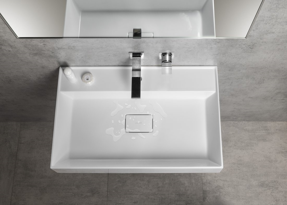 • Il lavabo è realizzato in marmo agglomerato.