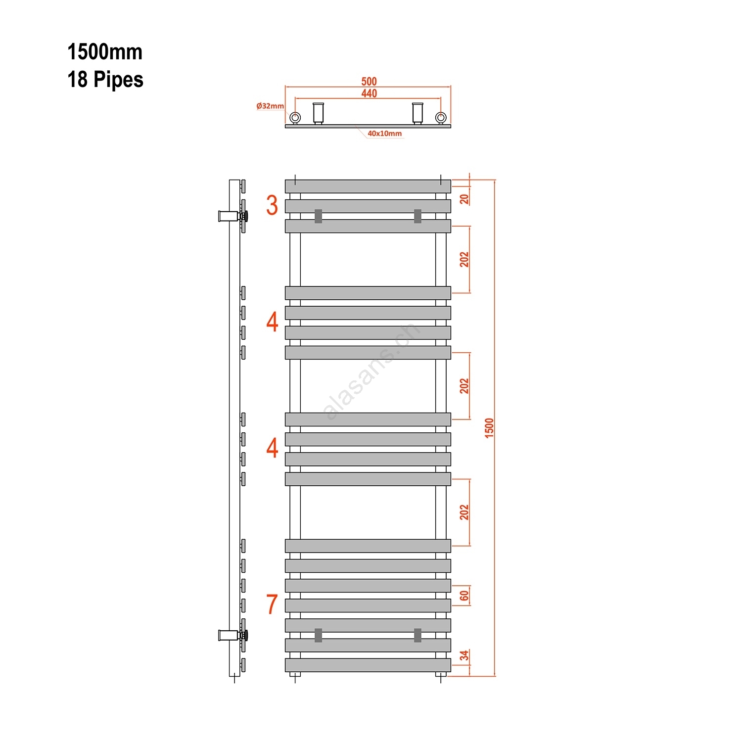 Sapho - Scaldasalviette JALOUSI 765W/230V 50x150 cm bianco