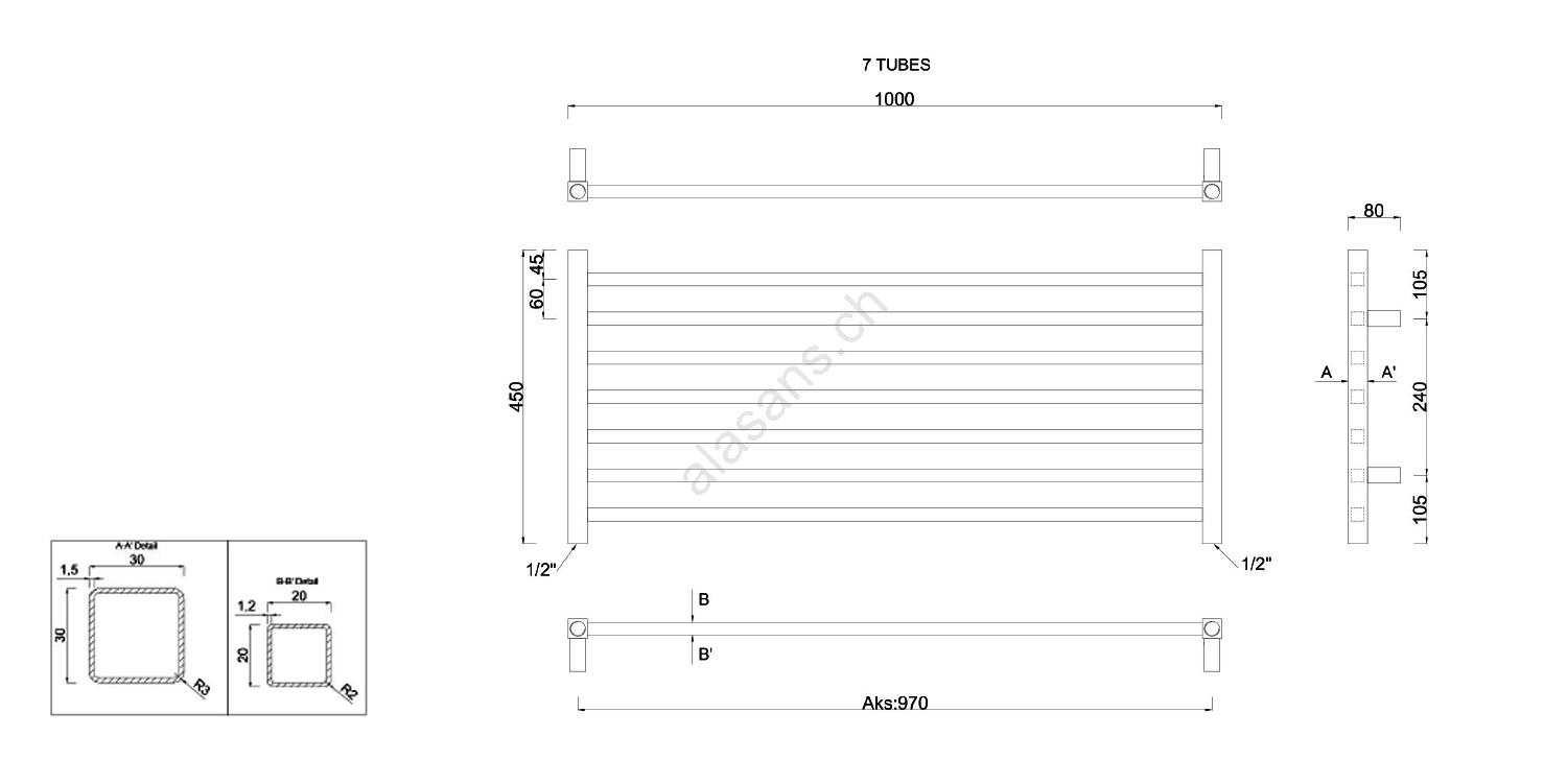 Sapho - Scaldasalviette METRO 295W/230V 100x45 cm cromo lucido