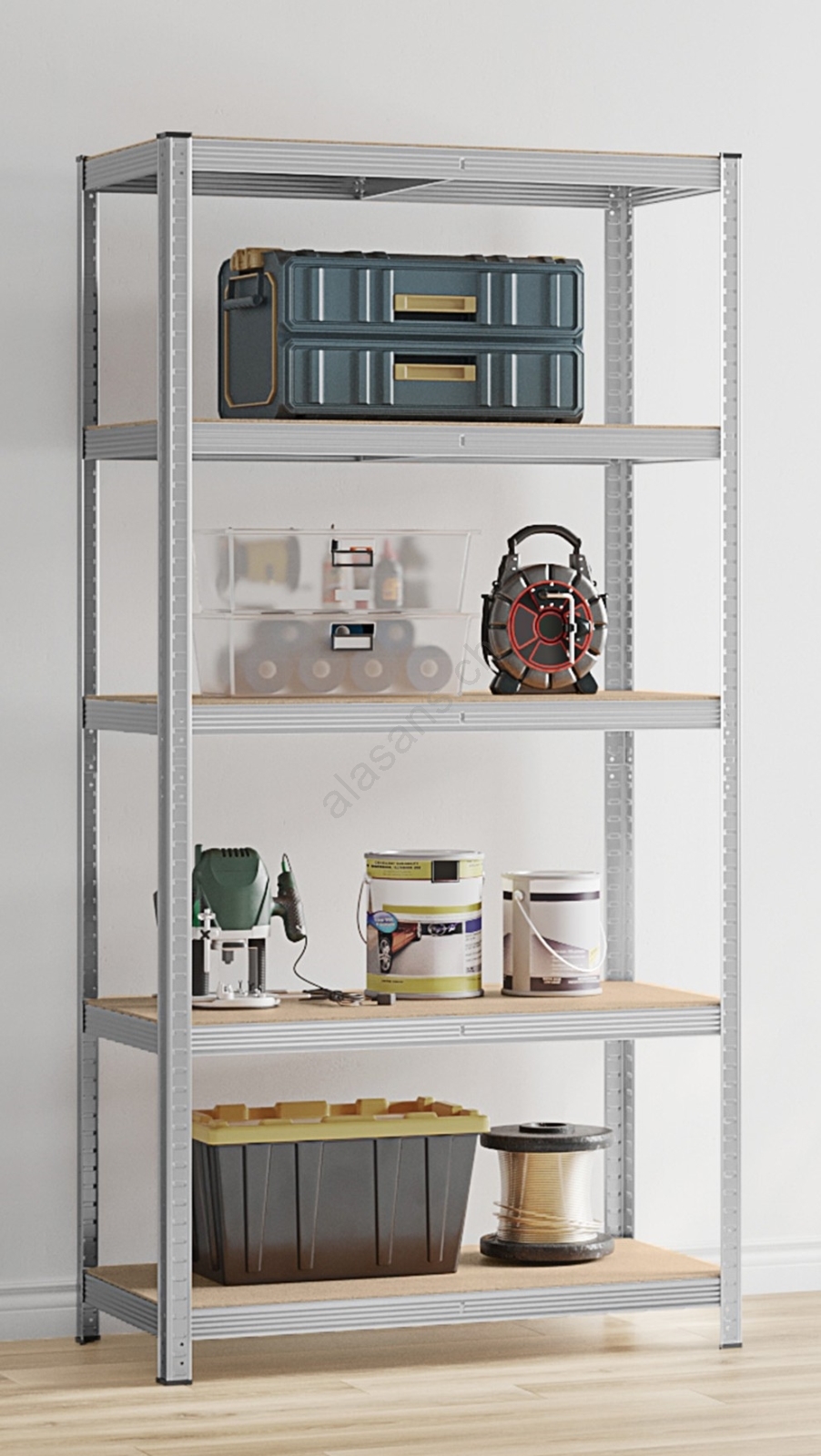 • Ogni ripiano sopporta fino a 120 kg e sostiene in sicurezza vernici, utensili e attrezzature per il fitness.