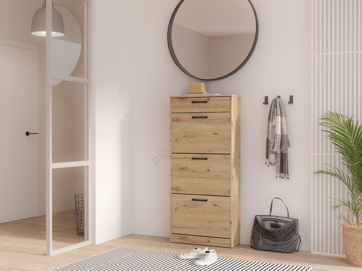 • Grazie al suo profilo compatto, questa scarpiera a 4 ripiani occupa poco spazio a terra pur offrendo ampio spazio di stoccaggio.