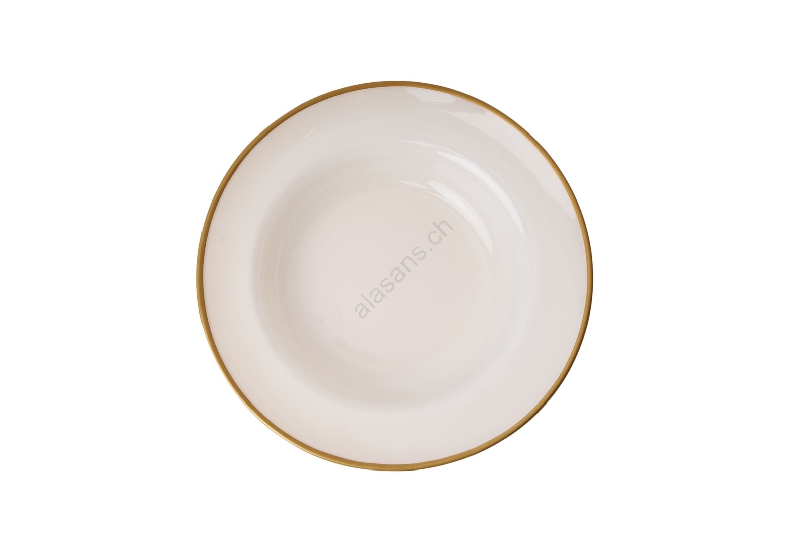 Servizio di piatti 18 pezzi, beige con dettagli dorati, in porcellana