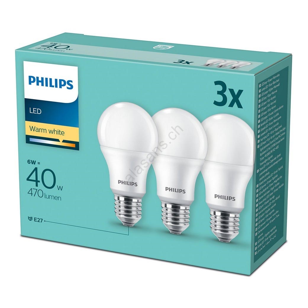 SET 3x Lampadina LED Philips E27/6W/230V 2700K Il design di alta qualità garantisce un'illuminazione perfetta degli interni. La categoria E27 è dedicata alle lampadine con lo stesso attacco. Nel nostro e-shop è possibile scegliere tra lampadine con filamento tradizionale o moderne lampadine a LED, che sono più efficienti dal punto di vista energetico e hanno una durata maggiore.