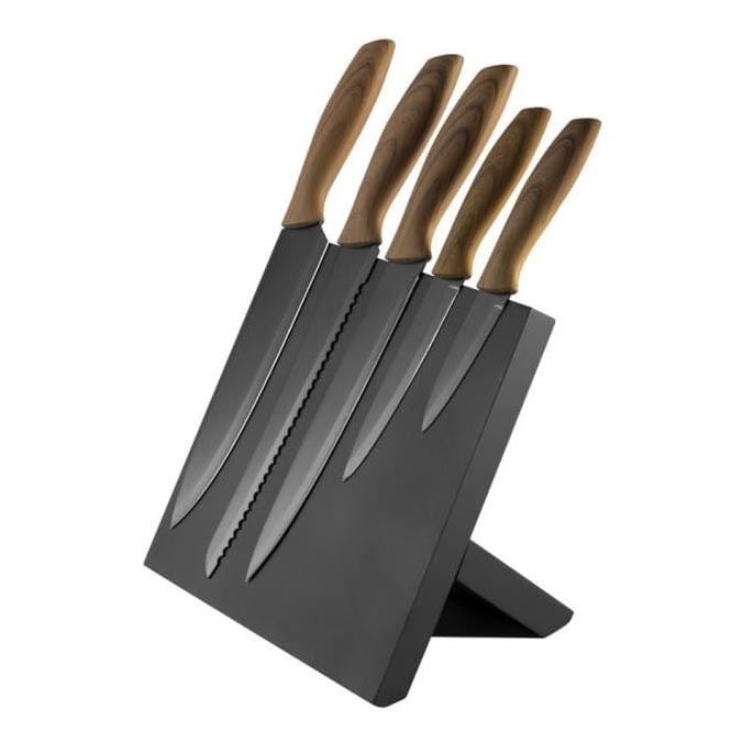 Set coltelli in acciaio inox 5 pz con supporto magnetico legno/nero