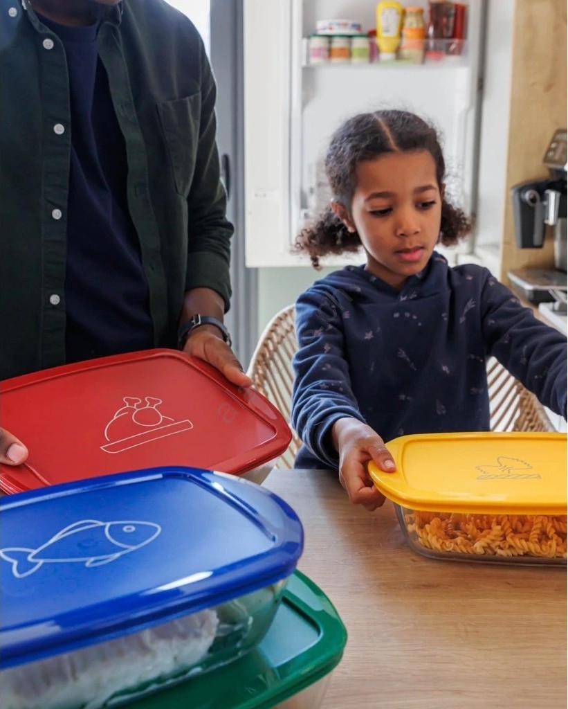 • La forma rettangolare sfrutta efficacemente lo spazio in forno e nel frigorifero, mentre il coperchio mantiene gli alimenti freschi più a lungo.
