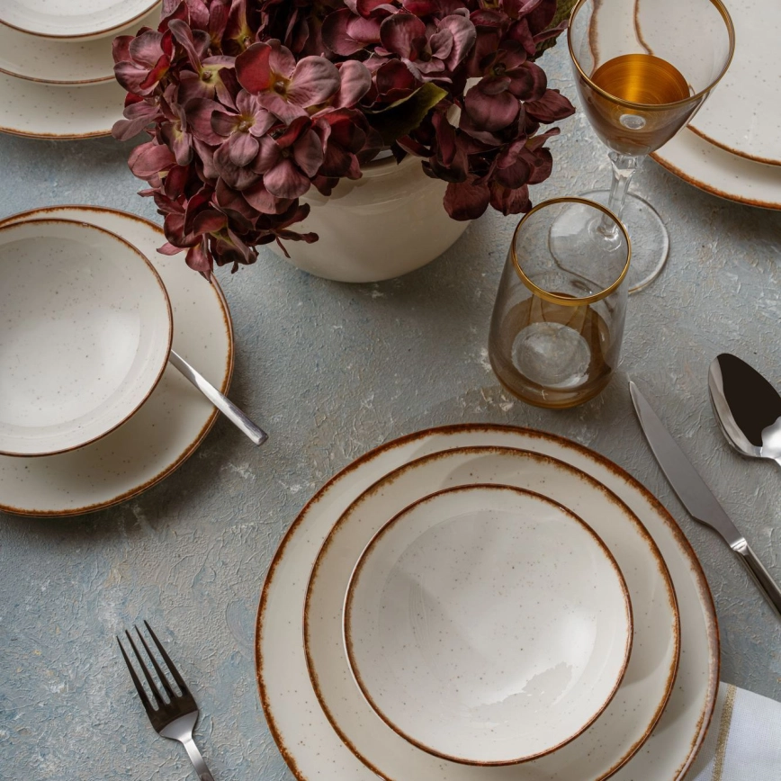 Set di stoviglie 24 pezzi in porcellana, beige/marrone