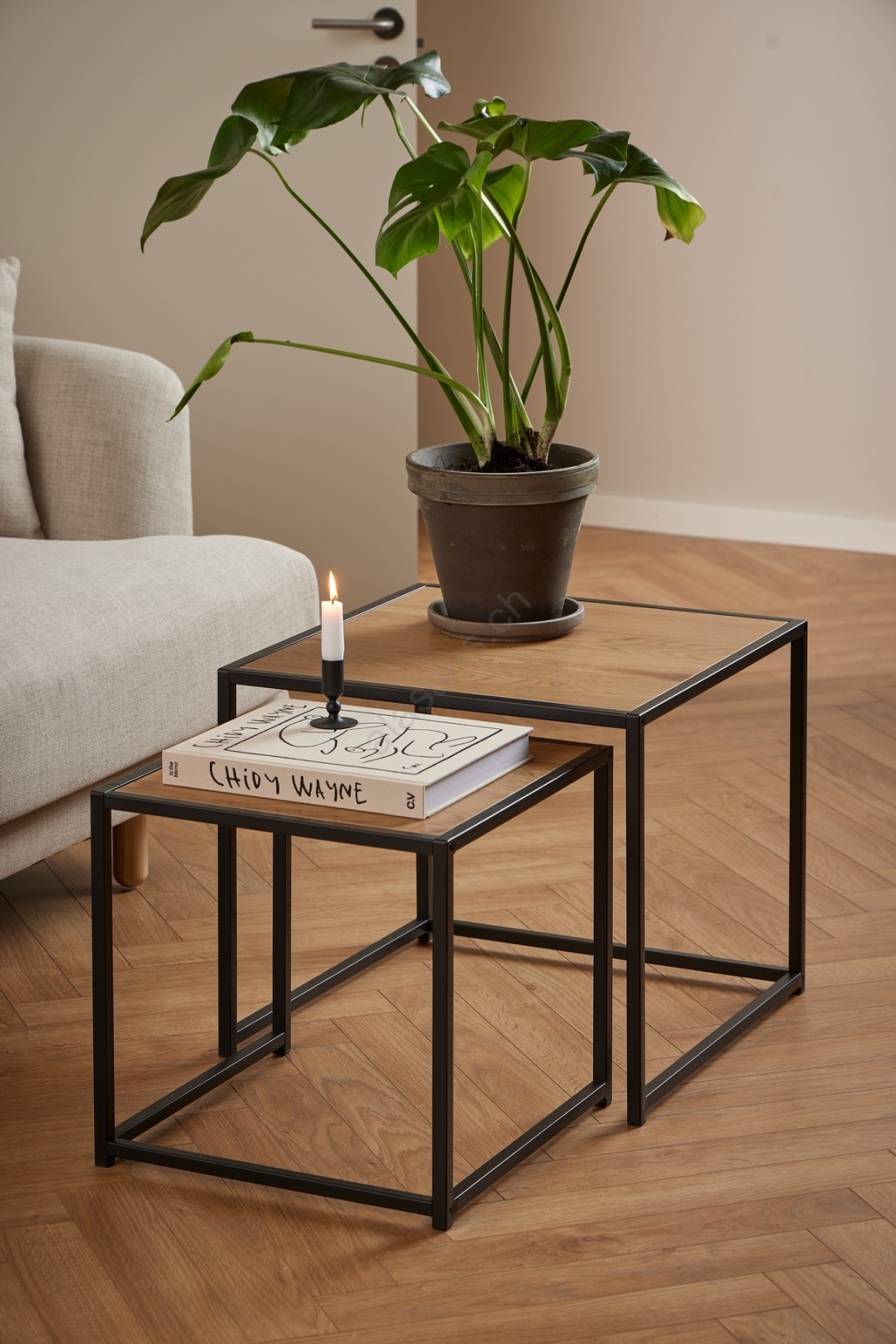 • Set di tavolini da caffè SARON 2 pz quercia/nero